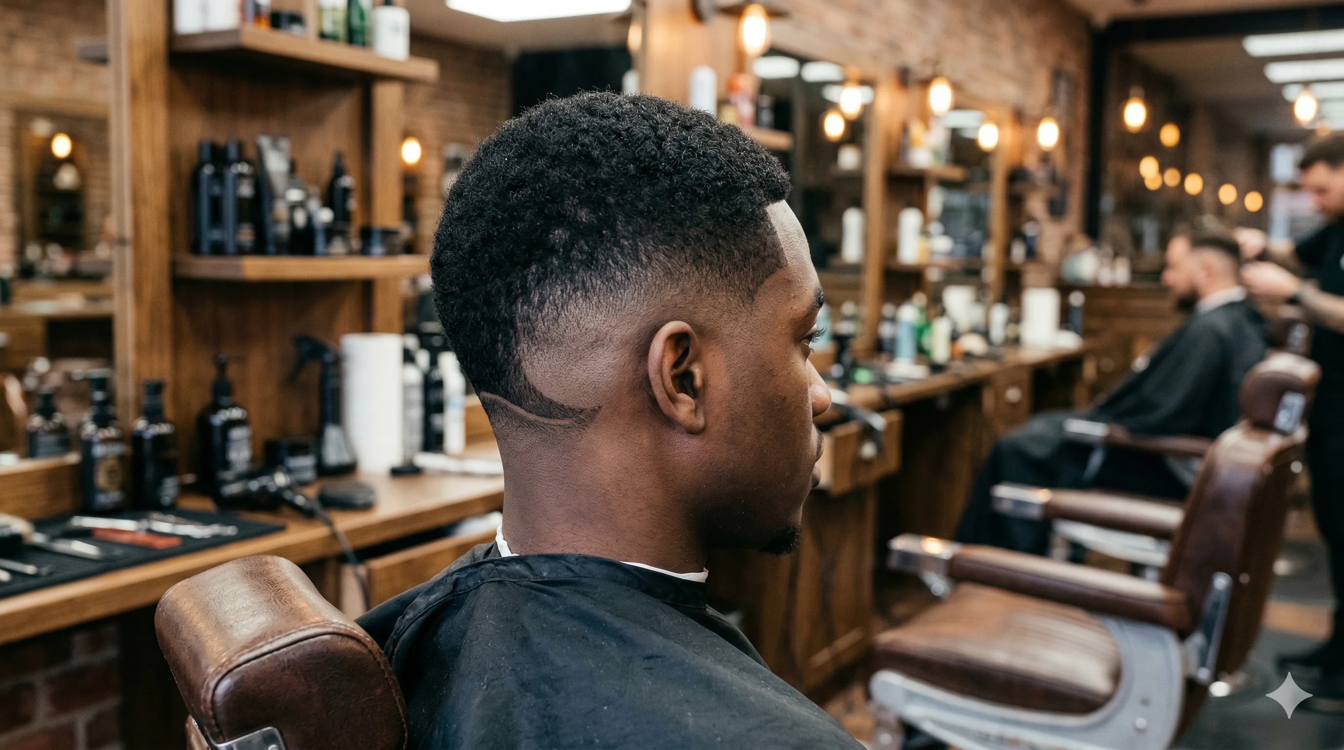 The drop fade is one of the most popular choices for afro-textured hair. The curve naturally complements the round shape of afros and natural styles, creating harmonious proportions.
