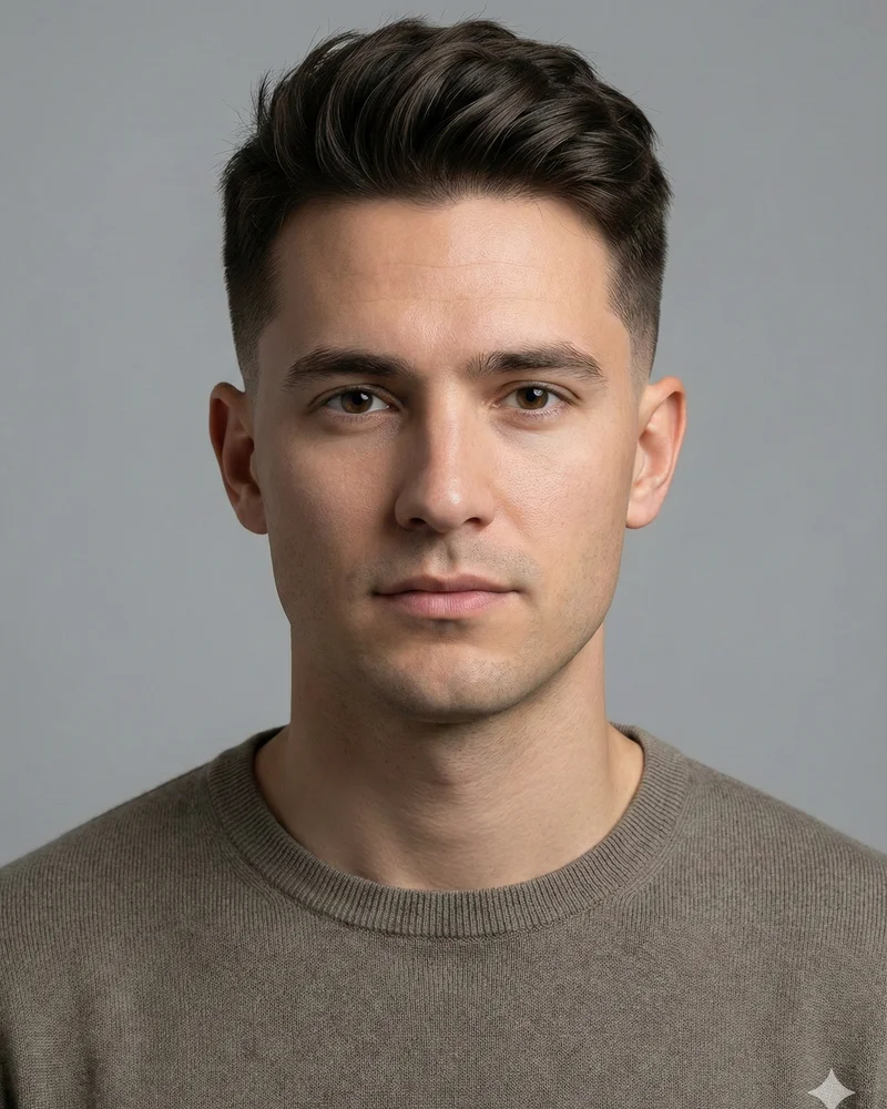 The most understated fade option, with such gradual transitions that the haircut appears almost natural, as if the hair simply grows that way. Ideal for conservative corporate environments, traditional settings, or men who prefer subtle grooming. The very gentle gradient suits all face shapes and requires minimal styling. This low-maintenance cut can last 4-6 weeks between barber visits. Style with minimal product or none at all.