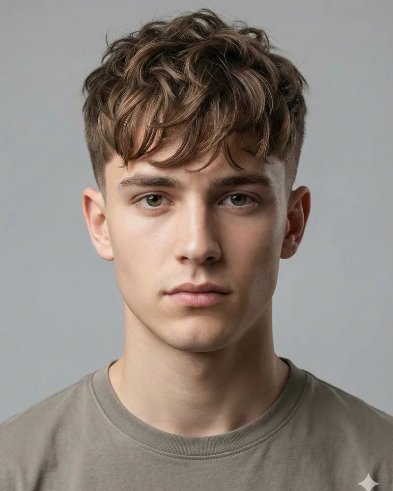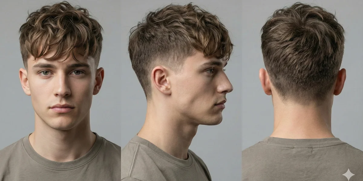 Ask for cropped sides (not a skin fade) with a longer, textured fringe. Emphasize that you want a natural, not-styled look. Request texturizing scissors work to enhance natural movement. Bring photos showing the specific length and texture you want.