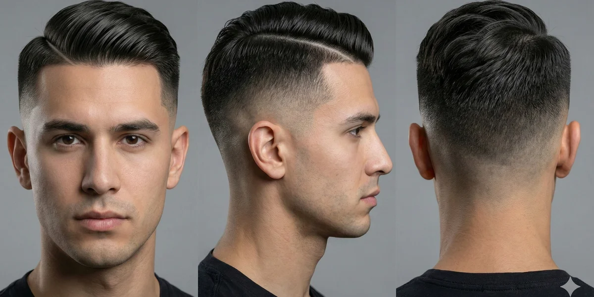 A sharp, statement-making style featuring a mid-level skin fade that drops behind the ear, accented by a razor-carved hard part line. The precise line creates clean visual separation between top and sides, adding architectural definition. Popular since the 2010s in urban barbershops. Best for men wanting a polished yet edgy look. Requires maintenance every 2-3 weeks to keep the hard part crisp; style with pomade or gel for hold.