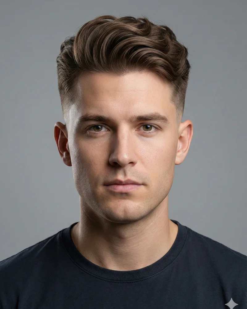 Ask for a fade with 2-3 inches on top for a soft, relaxed pompadour. Emphasize that you want a casual, not dramatic look. This is a good entry point if you're not sure about committing to a full pompadour.